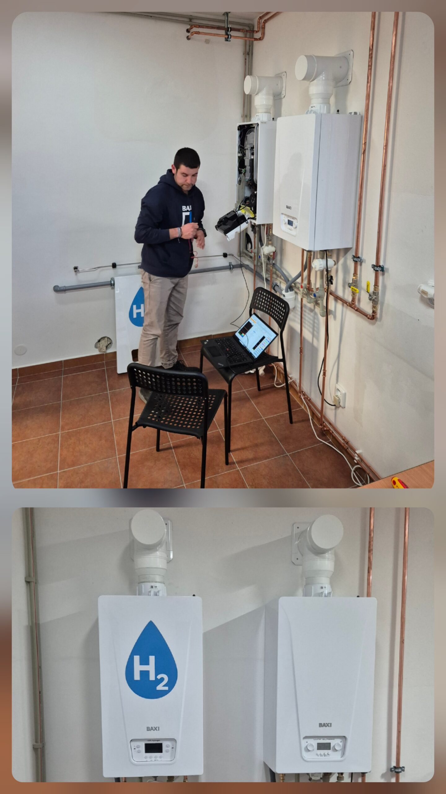 V téže místnosti bude osazen plynový kondenzační kotel připravený pro spalování 100% vodíku.